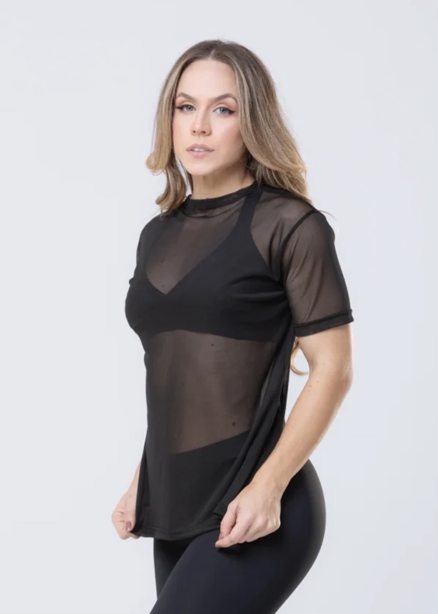 A Baby Look Tule é a escolha perfeita para quem quer se sentir mais à vontade durante os treinos sem abrir mão do estilo. Ideal para usar por cima do top, ela oferece leve cobertura com um toque de charme, valorizando seu look fitness.