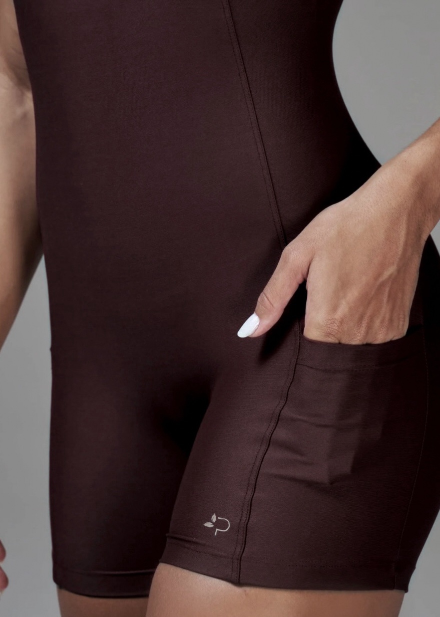 Os bolsos laterais estrategicamente posicionados oferecem praticidade para guardar pequenos itens essenciais, tornando este macaquinho perfeito tanto para treinos quanto para momentos casuais do dia a dia. Confeccionado em tecido de alta qualidade, ele abraça o corpo com suavidade, garantindo conforto e liberdade de movimento.