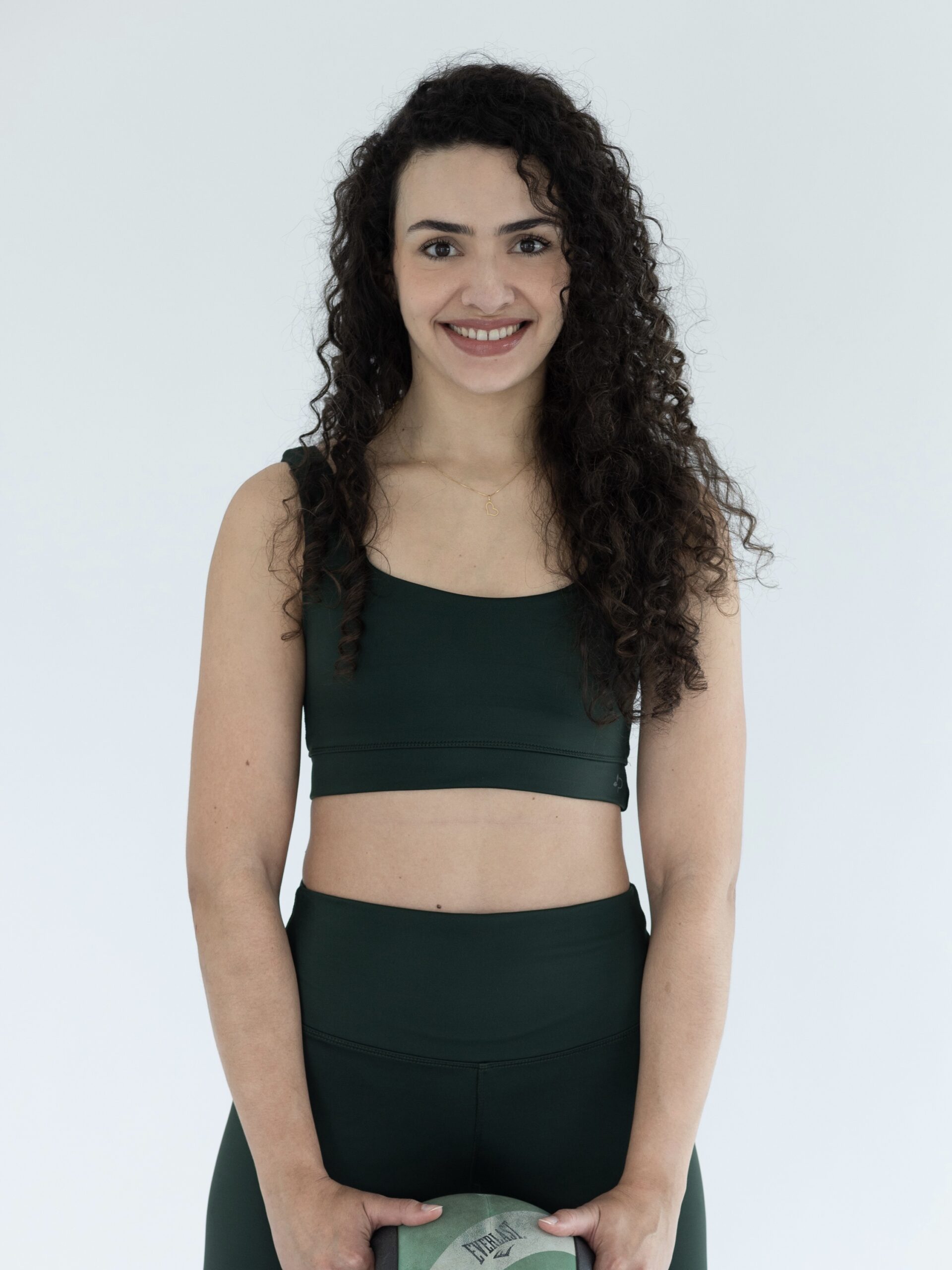 A construção do ponto com fio de elastano confere suporte e conforto ao corpo durante seus treinos, garantindo total liberdade de movimento e uma sensação suave e macia em contato com a pele.